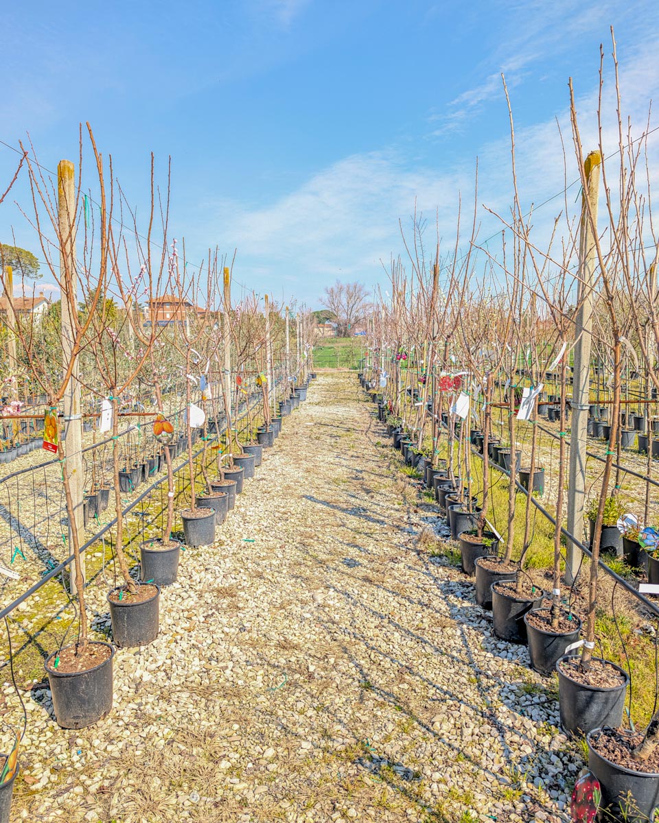 Nel nostro vivaio a Perugia trovi una vasta selezione di alberi da frutto in vaso, scelti per garantire una crescita sana e una produzione generosa. Offriamo varietà classiche come meli, peri, ciliegi, albicocchi, pesche, fichi, susini e noccioli, ma anche dei frutti antichi come nespoli, cachi, melograni, azzeruoli e castagni.